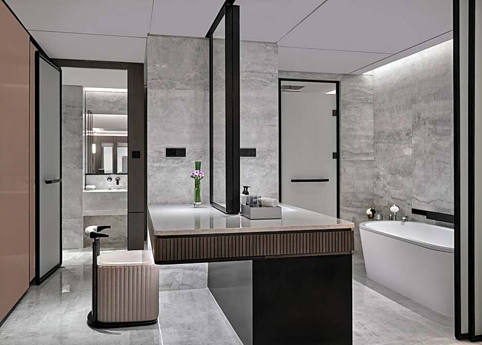 This suite's standout feature is the hot tub. Offering free toiletries and bathrobes, this suite includes a private bathroom with a walk-in shower, a bath and a hairdryer. The spacious air-conditioned suite offers a TV with satellite channels, soundproof walls, a mini-bar, executive lounge access as well as city views. The unit offers 1 bed.